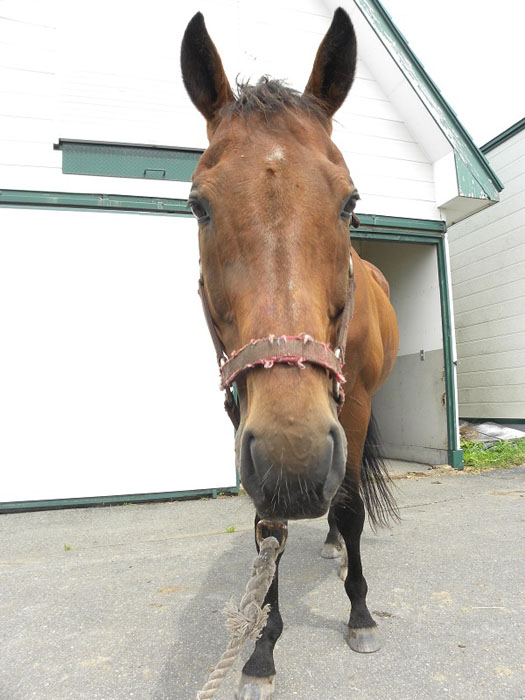 「まだうちに来て1か月ちょっとですが、とても元気ですよ。環境が変わったことでピリピリしているところはありますが、頭も行動も若いし、そういう馬は長生きすると思います。東京からも会いにきてくれたり、馬服を送ってくださったり、ファンの多い馬ですねぇ」とオーフルホースコミューンの斉藤武彦さん。