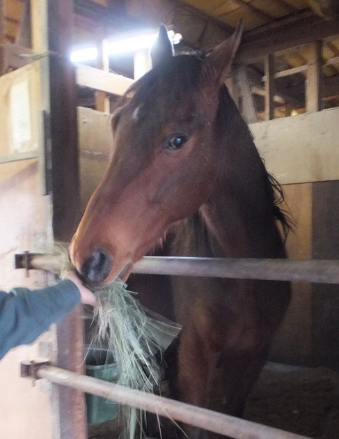 すでに半年ほどが過ぎたそうですが、環境にも慣れて元気に過ごしているそうですよ。「一般的に走った馬は賢くて物覚えもいいですね。10歳ですが馬は元気だし若々しいです」と稲葉さん。競走生活を終えた後は、穏やかになってのんびりした雰囲気に変わる馬も多いですが、マルヨフェニックスは目つきをギラギラさせながら表情が豊かで、ひじょうに生き生きしている印象を受けました。