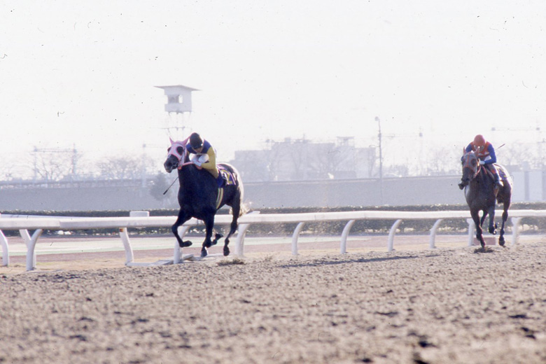 鞍上のゴーサインを受けたオグリローマンは更にスピードアップし、後続を寄せ付けない。残り100mでムチ一発。兄オグリキャップよりも4秒速い、1分41秒0で笠松ラストランのゴールを駆け抜け、中央競馬へと旅立っていった。