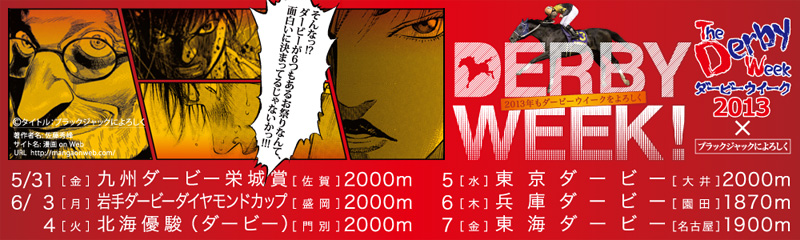 全国各地の6競馬場(佐賀・盛岡・門別・大井・園田・名古屋)で行われる“ダービー”6競走を約1週間で短期集中施行する夢のような6日間、それが「ダービーウイーク(Derby Week)」(創設2006年)です。