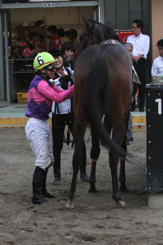 前走から中2週でしたが、もう体重は心配しなくて大丈夫ですね。今回はゲートがずいぶん良くて、前に行きすぎじゃないかと思ったくらいです。次走は笠松のクイーンカップ(6月25日)を考えています。名古屋では強いんですが、笠松ではまだ勝っていませんからね。古馬との対戦はその後で検討します。