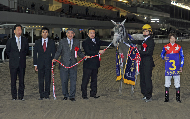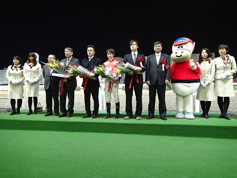 グランダム・ジャパン2歳シーズンの第3戦に組まれたローレル賞。うら若き2歳牝馬のレースは何が起きるかわからない荒れるイメージが強いが、今年は1番人気に推されていたホッカイドウ競馬のクライリングが御神本訓史騎手を背に優勝した。クライリングを管理している田中淳司調教師は、のちの南関東重賞ウイナーたちを多く手掛けている印象はあるが、自身が南関東の重賞を制したのは初めてだという。「厩舎にとっても本当にうれしいですね。今年の道営は例年よりもレベルが高いと言われている中で、重賞でもいい勝負をしてきた馬です。長距離輸送はありましたが、道営での力を出してくれればいい勝負はしてくれるだろうと思っていました」(田中調教師)