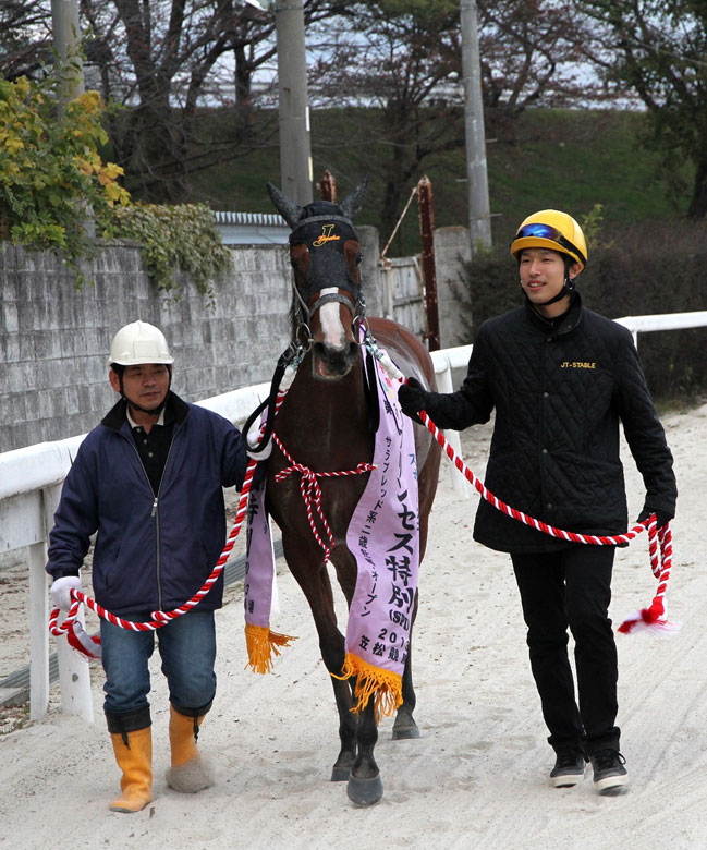 スタートで少しつんのめるように出てポジションがちょっと下がったんで、その点はちょっと心配でした。人気になっているぶん、包まれて出てこられないんじゃないかと。それでも馬群を割って抜けて出てくる脚がありました。道営でも差す競馬をしているので、問題なかったようです。