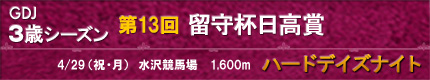 グランダム・ジャパン3歳シーズンは折り返し点を過ぎて後半戦に突入したが、東北の春は遅く4月21日のJRA福島開催が積雪の影響により中止。代替競馬が留守杯日高賞と同日の29日に実施されることになり、これに伴って水沢競馬の地方競馬IPATでの発売が中止となった。それでもなんとか桜前線は岩手まで北上、水沢競馬場名物である向正面の桜並木が満開となって留守杯日高賞は行われた。