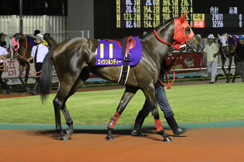 この日の川崎競馬場は、季節外れの台風の影響により雨が降ったり止んだりの空模様で、1レースから重馬場。メインのパドックの時間帯にはいったん傘がいらない程度にはなものの、レースが近づくにつれて霧雨に覆われていった。しかし、そんな不安定な天気を吹き飛ばすかのような爽快なパフォーマンスを見せたのがアムールポエジーだった。