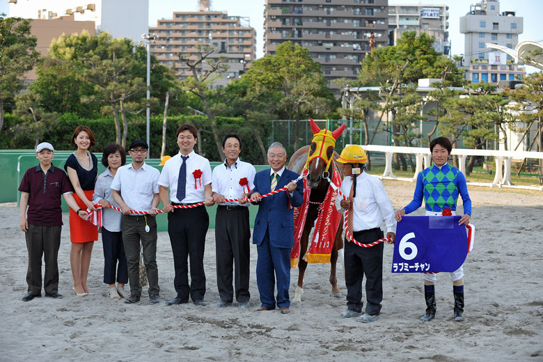 過去には躓いたりトモを滑らせたこともあり、スタートに細心の注意を払ったというラブミーチャンの陣営だが、今回はどの馬よりもいいスタートを切った。内でスパロービートが前に行く構えを見せたものの、「以前乗ったことがある馬で速さを知っていたので、そのままハナに立てると思いました」と冷静だった森泰斗騎手。外からスターボードにも並びかけられたが、楽な手ごたえのまま3コーナーで先頭に立つと、そのスピードに太刀打ちできる馬はいなかった。直線に入るとあっという間に後続を突き放し、余裕のゴールイン。大観衆はラブミーチャンの速さと強さに酔いしれた。