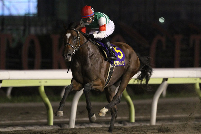 2歳時は北海道の田中淳司厩舎の所属で、北海道2歳優駿JpnⅢ、全日本2歳優駿JpnⅠを制し、2歳馬ながらNARグランプリ年度代表馬となった。その後、大井の森下淳平厩舎に移籍。南関東三冠の前哨戦・京浜盃、一冠目の羽田盃、二冠目の東京ダービーと、いずれも好位につけて直線抜け出すという、他馬をまったく寄せ付けない圧倒的な勝ち方。ここまでダートでは無敗。中央勢に抜けた馬がいないだけに、今回も断然人気となりそう。もし勝てば、南関東三冠は2001年のトーシンブリザード以来13年ぶり(当時は東京王冠賞も含めて四冠)。また、他地区所属騎手として初めて東京ダービーを制した金沢の吉原寛人騎手には、ダートグレード初制覇もかかっている。