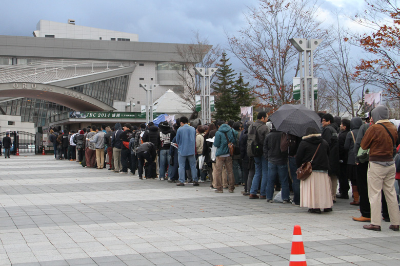 11月3日、ついにJBCデーが到来した。あいにく前日から雨が断続的に降り、当日も小雨が降ったりやんだり愚図ついた天候だったにもかかわらず、徹夜組も含めて開門前に800人あまりの長蛇の列。山の中腹にある盛岡競馬場特有の冷え込みと強風も吹き、体感温度はまるで冬並み。それらを見た主催者は開門時間を早めた。お国柄を色濃く出したお出迎えもJBCデーに華を添えた