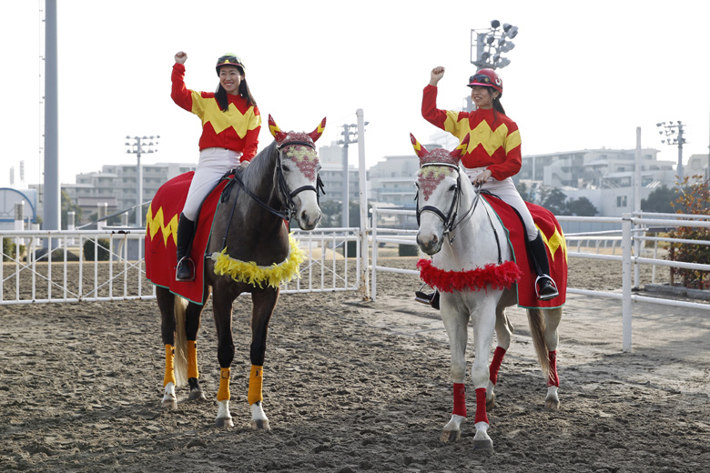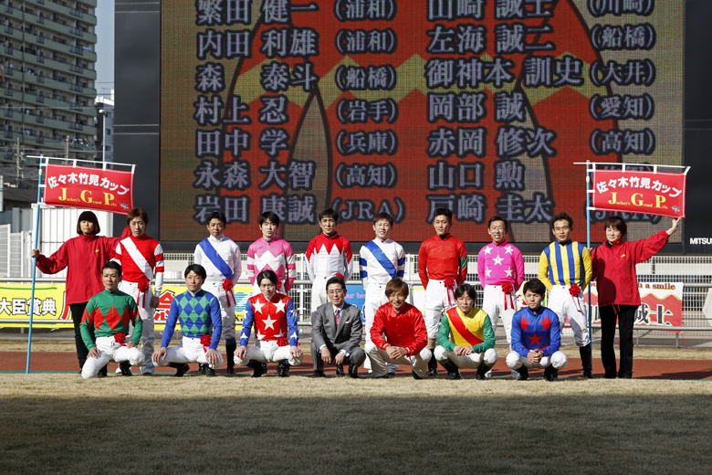 「年に一度、全国の一流ジョッキーと会えるのが楽しみなんです」と、嬉しそうに語ったのはゲストの原良馬さん。佐々木竹見カップジョッキーズグランプリ当日には、佐々木竹見元騎手と、競馬解説者の原良馬さんのトークショーが毎年行われている。この競馬界のレジェンド2人の話を楽しみにしているファンも多いことだろう。佐々木竹見氏の今年の注目騎手は、初出場の永森大智騎手(高知)。「(昨年)195勝というのは凄いこと。毎年来てもらいたいですね」と期待は大きいようだ。一方、「これまで2位が4回ですもんね。優勝してもらいたい」と原良馬さんは、今年で10回目というメンバー中最多出場の岡部誠騎手(愛知)の名前を挙げた。またJRAからは、岩田康誠騎手と戸崎圭太騎手が選出された。元地方競馬所属騎手が2名参戦するのはシリーズ史上初めてのこと。「経験豊富な地方競馬のトップジョッキーは、やはりレベルが高いということ」などという話もあちこちで聞かれ、地方競馬時代の勝負服を纏う2人にも大きな声援が送られていた。