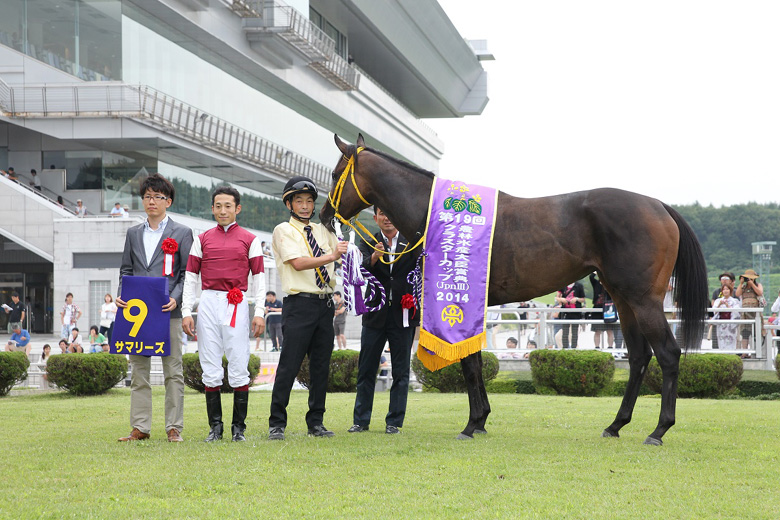 サマリーズは、2012年の全日本2歳優駿JpnⅠを制し、2歳ダートチャンピオンに輝いた馬。カラ馬に絡まれながらも、後続を3馬身突き放して逃げ切ったレースは相当なインパクトがあり、当時から陣営は、この馬のスピード能力を高く評価していた。その後、芝の重賞で大敗。再びダート路線に戻るも元気のない成績が続いていた。しかし2走前の三宮ステークス(阪神ダート1200メートル)で久しぶりに勝利をあげ、複調気配を見せていたのである。