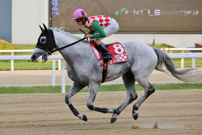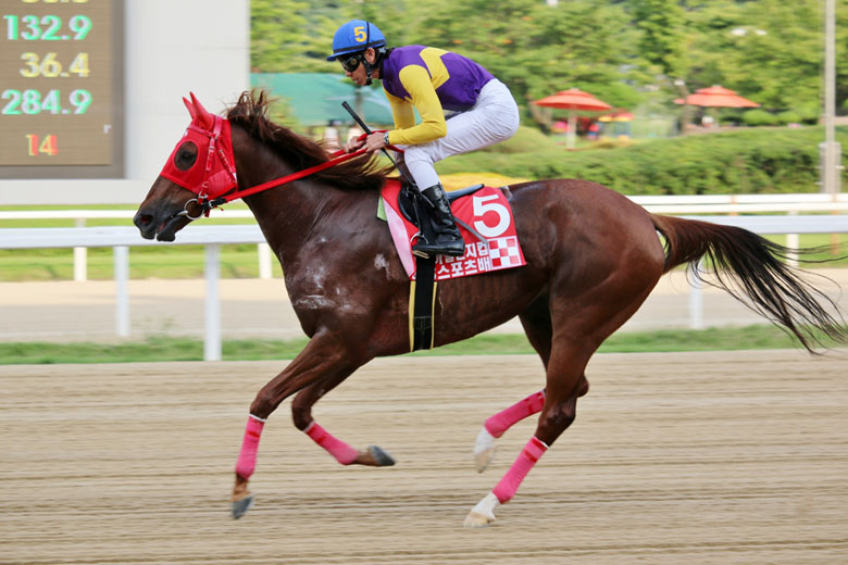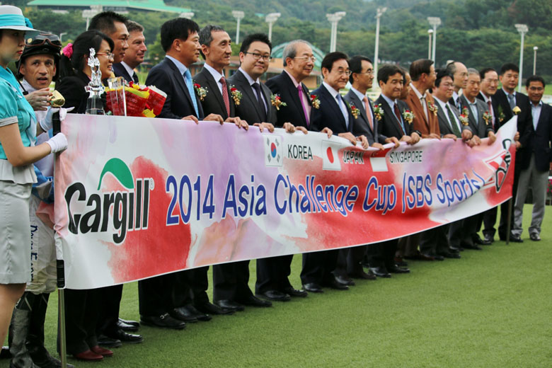 2年目を迎えた韓国の国際交流競走は、当初は昨年と同じく大井競馬場とソウル競馬場の2場間での交流が予定されていたが、シンガポールで韓国の馬券を発売することが決まり、新たにシンガポールを加えて『アジアチャレンジカップ』に変更。舞台は変わらずソウル競馬場のダート1400mだが、さらに国際色を増して行われた。昨年のファイナルスコアーに続き、ショコラヴェリーヌとピエールタイガーの2頭で挑んだ荒山勝徳調教師が「シンガポールからは(地元の)GⅠ、GⅡ、GⅢを勝っている馬が来ますからね」と気にしていたように、シンガポールは、最初からなかなかのメンバーをそろえてきた。その筆頭が、国際レーティングで115を獲得していたエルパドリーノ。韓国のファンもその数字を信頼したようで、単勝2.8倍の1番人気に支持された。