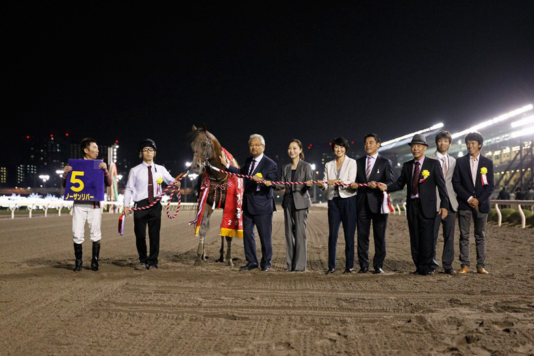 直線に入るとサトノタイガーが後続との差を広げた。「一瞬やったと思ったけど、このメンバー相手では甘くなかったですね」と鞍上の左海誠二騎手。しかし残り200メートルを切ったところでドリームバレンチノが交わして先頭に立った。そして、前を目がけて馬場の真ん中を猛然と追い込んできたのがノーザンリバーだ。内で粘るドリームバレンチノを一気に捉えてゴールイン。コースレコードに0秒1差と迫る1分10秒2という好タイムでの勝利となった。