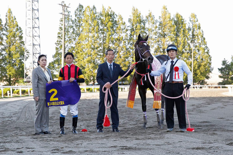 2周目の3コーナーで後続との差が少しついたので、この馬の勝ちパターンになったかなと感じました。このあとの予定はオーナーと相談して決めますが、来年は白山大賞典の3連覇を目指したいですね。神経がとてもデリケートな馬なので、今後もそのあたりに気をつけていきたいと思います。