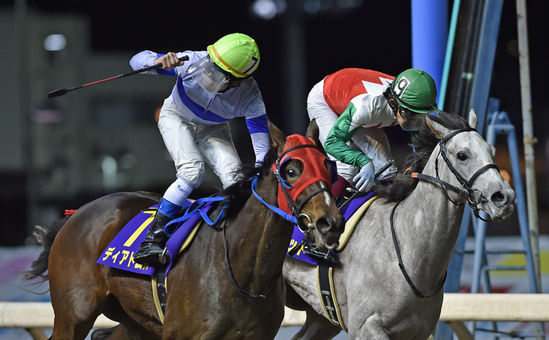 3~4コーナーではディアドムスが外から一気にポジションを上げていき、先行していた中央勢3頭に襲いかかった。直線の半ほどでディアドムスが先頭に立つと、タップザットも食らいついていたが、そのまま押し切り半馬身差をつけてのゴール。三浦騎手は初JpnⅠ制覇の喜びをガッツポーズで示した。