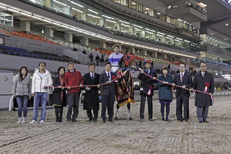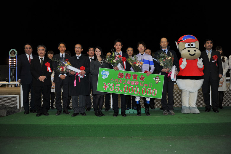 一方、地方馬最先着は御神本訓史騎手が手綱を取ったパーティメーカー(浦和・小久保智厩舎)だった。道中は中団後方から追走していき、御神本騎手の手が早々動くシーンも見られたのが、最後には伸びて5着。「(道中は)手応えがないのかなと思ったんですが、まだ余力があって伸びてくれました。このメンバーの中でよく頑張っているし、もっと距離があった方がよさそうですね」(御神本騎手)。デビューした北海道時代には盛岡遠征で芝のジュニアグランプリを優勝したこともある馬なのだが、ひとまず次走は浦和のニューイヤーカップを予定している。その後のことは未定ということだが、どんな路線を進んでいくのか楽しみだ。