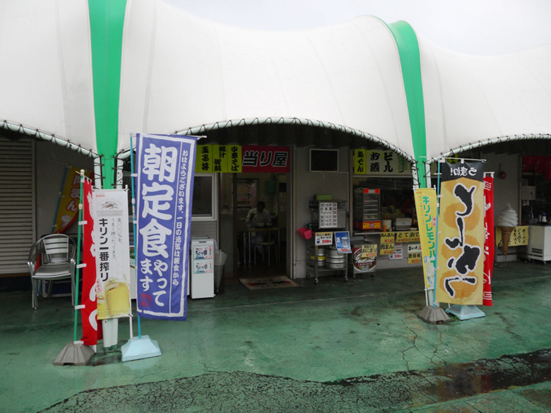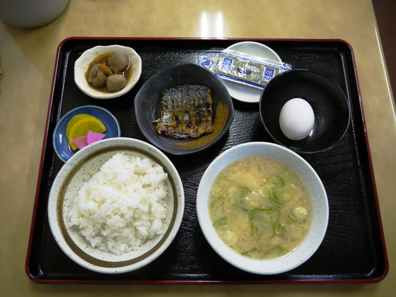 と、あたりを見回したら「朝定食やってます」ののぼりが目に入った。今の気分は朝食なんだから、これは行くしかないでしょう!