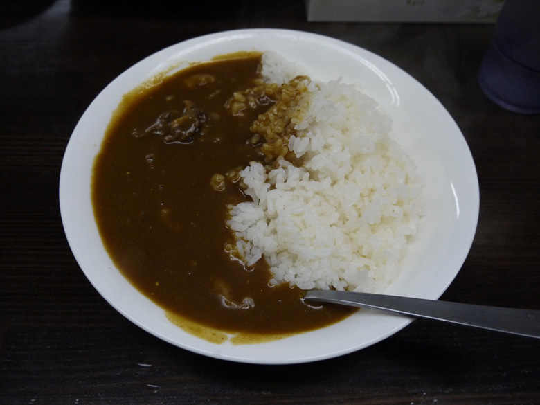 ボリューム的には手頃という感じだが、たっぷりのカレールーから漂う匂いは柔らかい刺激。スプーンでそのなかを探ってみると、「牛スジ」がたくさん入っていた。それをさっそくいただくと、おお、なんてやわらかい! 思わず店のお兄さんに「うまいですね」と言ってしまった。