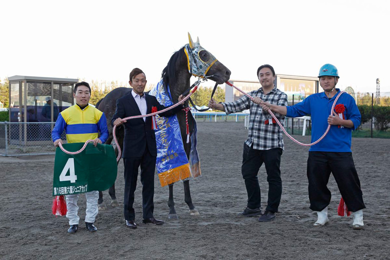 併せ馬で強めに追い切ったらソエを気にしだしたので心配しましたが、強い内容でしたね。門別のレース映像を見て、前走が少し重そうに感じたので、マイナス9キロで仕上げたのもよかったと思います。脚元が固まればもっと走りますよ。1、2着馬は金沢ヤングチャンピオン(11月30日)に向かう予定です。