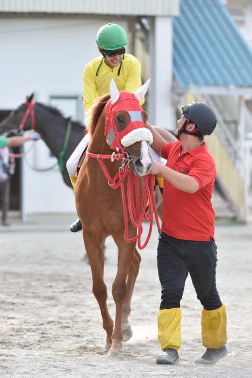 この馬が一番強いと信じていたので、積極的なレースをしようと、何度も心に言い聞かせて乗りました。自分はあたふたしてしまいましたけど、馬はどっしりとして、まだ遊んでいました。今まで悔しい思いばかりしてきたので、ゴール板を過ぎたときは涙が止まらなかったです。