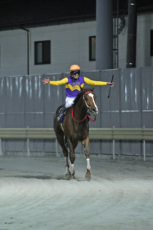 初めて跨った時から惚れていた馬なので本当にうれしいです。ここまでもまっすぐ一生懸命走ってくれた馬ですが、まだトモが緩いので、川崎競馬場のコーナーに気をつければ結果はついてくると思っていました。今回が3戦目で使いながら良くなっていますが、これからもっと成長してくれるでしょう。
