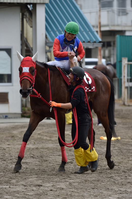 いやあ、ホッとしました。外を回らされる形になりましたけれど、一戦一戦、強くなっていると思います。ただ、2周目の3コーナーでの伸び脚がいつもほどではなかったのは、前走から中1週というローテーションの影響かもしれないですね。今後については、オーナーと相談してから決めたいと思います。