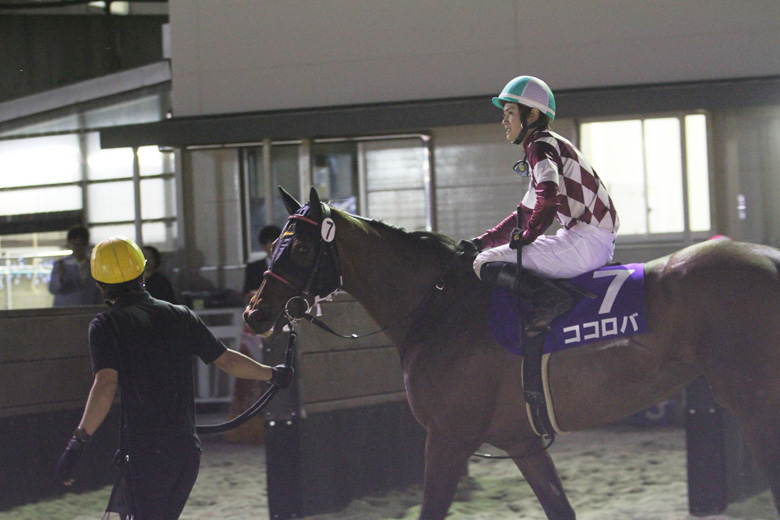 ゲートが開くと、好スタートを切ったココロバがほとんど競り合うことなく先手を取った。同厩舎のプリュムローズが大外から積極策で2番手に。先行争いが予想されていたフレアリングマリーは内の3番手に控えた。2番人気のマヤノポルカが好位を追走し、ハッピーメイカーは中団で前をうかがう態勢で、縦長の隊列でレースが進んだ。ほぼそのままの位置取りで各馬が勝負どころを迎えると、「自分のペースでいけば粘ってくれる馬」という阪野学騎手の言葉どおり、直線ではココロバが持ち味のしぶとさを発揮。ゴール前では、馬群を割って伸びてきたハッピーメイカーが猛追したが、ココロバがハナ差しのいで逃げ切り勝ち。重賞初挑戦でタイトルを手にした。