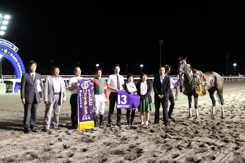 当日の門別競馬場は入場人員が多く、ホッカイドウ競馬における最高賞金額を誇るレースを迎えるにふさわしい賑わい。静内高校吹奏楽部の生演奏によるファンファーレの余韻が消えていくのと入れ替わりに開いたゲートからは、まずワイルドフラッパーが先手を主張していった。