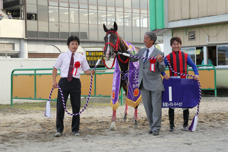 昨年は2番手から直線で逃げるシャイニングサヤカに並びかけながら、逆に突き放されたアスカリーブル。昨年の忘れ物を水沢へ取りに戻った形になったが、「うち(の厩舎)へ来てから初の1着」と出川克己調教師が言えば、吉原騎手も「ボクが乗って勝つんだという気持ちで乗った」と。吉原騎手は前日の金沢競馬で本馬場入場時に騎乗馬が転倒し、後半のレースで騎乗変更となった直後の遠征。2012年9月の戸塚記念以来約2年ぶりの勝利は、グランダム・ジャパン古馬シーズンとしても大きい1勝だが、アスカリーブルのキャリアにも、調教師にも騎手にも価値ある勝利となったようだ。