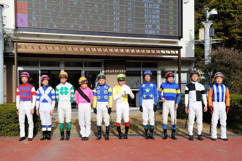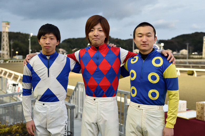 今年は1月中旬に実施された、全日本新人王争覇戦。その前日はまさかの大雪となったが、出場騎手の大半は前日のうちに高知入りしていた。しかしその前には、アクシデントによる参加騎手変更が2件あった。落馬で負傷した石川倭騎手(北海道、大井で期間限定騎乗中)と瀧川寿希也騎手(川崎)が出場を辞退し、代わって浦和の見越彬央騎手と岩手の鈴木麻優騎手が出場することに。鈴木騎手に至ってはレース数日前の召集だった。そして迎えたレース当日は晴れ上がったが、気温は10度に達しないほどの肌寒さ。それでも出場騎手たちはとても賑やかだった。というのも、地方所属騎手8名のうち7名は地方競馬教養センターの同期生。2014年4月以降にデビューを迎えたその7名は、紹介セレモニーの前から同窓会のような盛り上がりを見せていた。