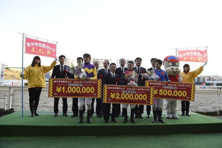 2戦を終えてのポイントは、8着1着のデムーロ騎手、5着2着の真島騎手、2着5着の戸崎騎手の3人が60ポイントで並んだ。“同点の場合、第2戦の成績上位者を優先”という規定から、優勝はデムーロ騎手。その結果を知らされたデムーロ騎手は、「シャンパン!シャンパン!」と無邪気に喜んだ。
