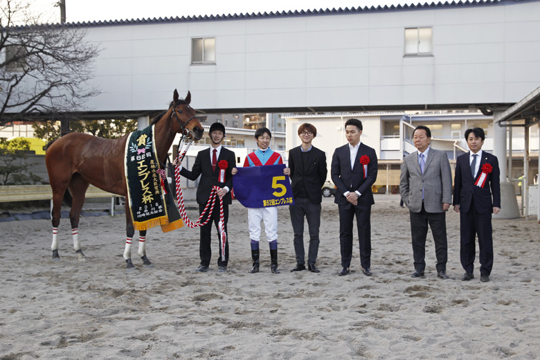 どの新聞を見ても◎だったので、負けたら大変だと思っていたので、勝ててホッとしています。ダートは安定して走ってくれますし、牝馬ならトップレベルだと思います。前走の川崎記念も上位にきていたし、牡馬ともやれると思います。明日の(川崎でデビューする)藤田菜七子ちゃんもよろしくお願いします(笑)。