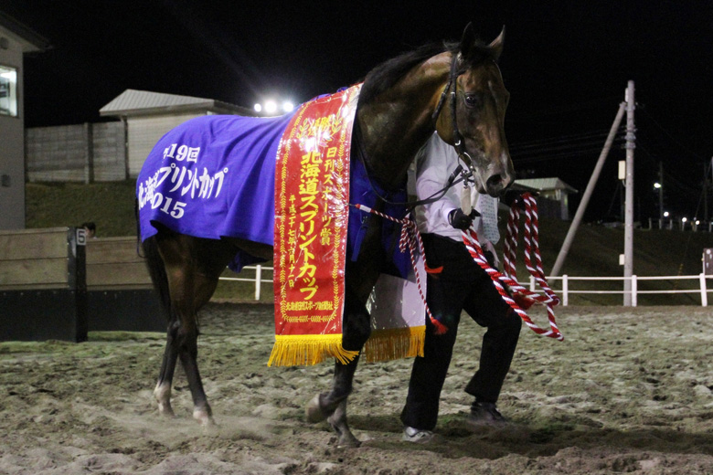 「自分の形でレースができる馬ですし、小細工はしたくありませんでした」と鞍上の勝浦正樹騎手が話していたように、ゲートが開いて馬群からいち早く抜け出すと、後続に3馬身ほどの差をつけて逃げた。ホッカイドウ競馬に転入緒戦となるポアゾンブラックなどの先行勢が続き、過去2年続けてこのレースで4着のアウヤンテプイは先行勢をマークする位置につけた。一方、1番人気のダノンレジェンドはその先行争いに加わらず中団からレースを進めていった。