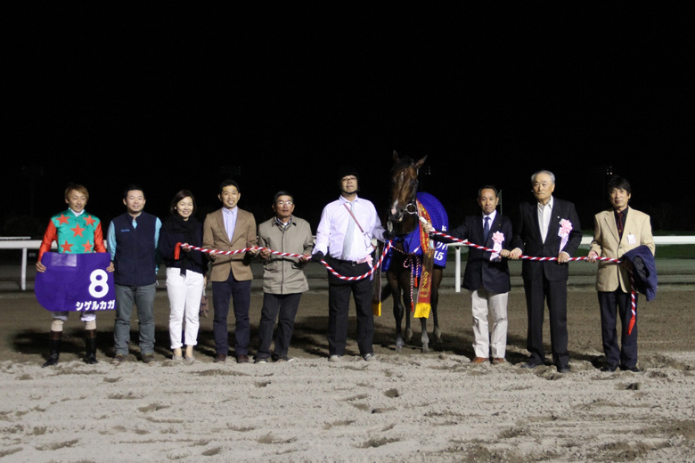 直線に入ってもシゲルカガのスピードに陰りは見られず。ゴール前、ポアゾンブラックが迫って来るも、3/4馬身の差を保って先頭でゴール。ダノンレジェンドは直線で猛烈な追い込みを見せるも、2頭をとらえきれず3着まで。4着には早めに仕掛けたアドマイヤサガスがインコースで粘り込み、アウヤンテプイは昨年より着順を落として5着だった。