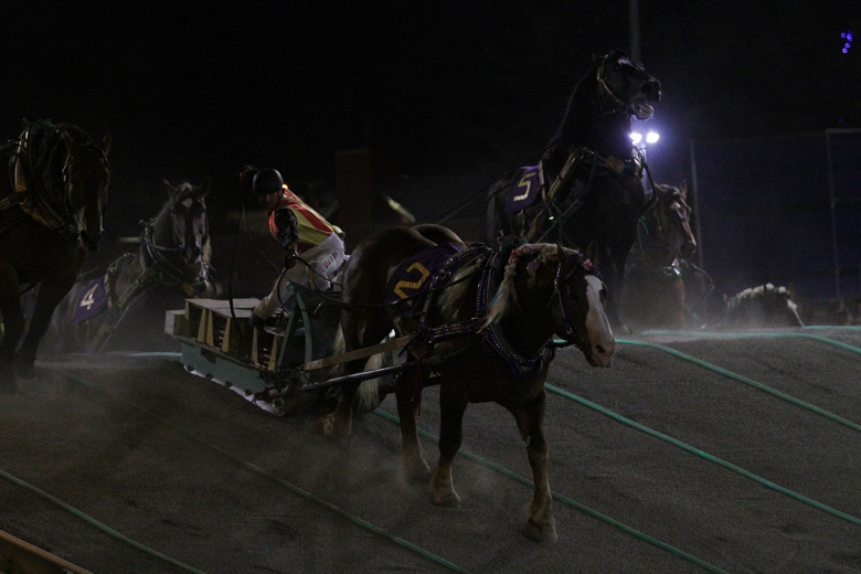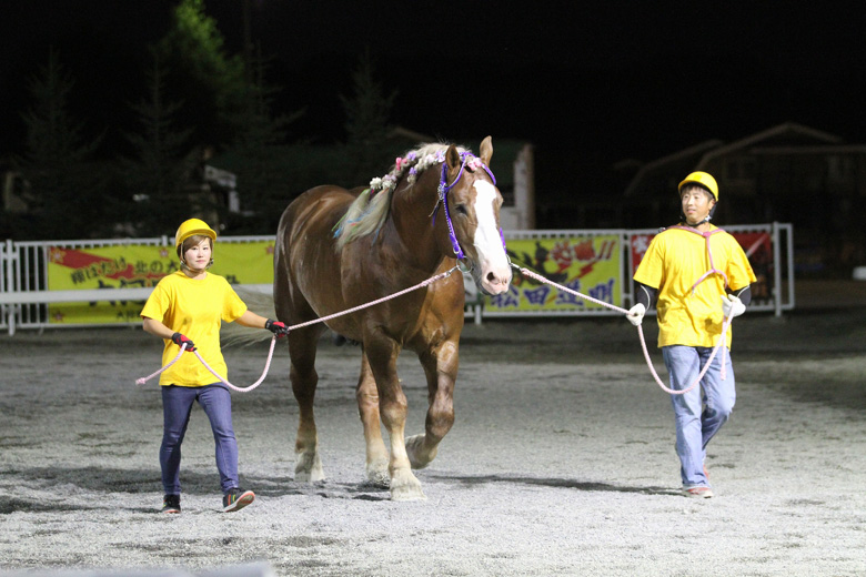 ばんえい競馬の夏の大一番、ばんえいグランプリ(BG1)。ファン投票で選ばれた7頭と通算賞金上位3頭が出走。お盆開催で、観光客や帰省客の姿もみられ、この日の帯広競馬場の来場者は4,055人とにぎわった。昨年の覇者フジダイビクトリー、インフィニティー、オレノココロ、ファン投票1位のキタノタイショウがレースを引っ張る展開。馬場水分は1.5%だが数字以上に重く感じられ、各馬小刻みにゆっくりと進む。第2障害には1分19秒で到達し、最初に仕掛けたのはフジダイビクトリー。ひと腰で越え、そのまま力強い脚色でゴールまで押し切り、2着に7秒差をつけ、単勝2.6倍の1番人気に応えた。勝ち時計は2分30秒7。