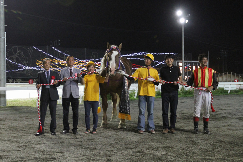 フジダイビクトリーは文句のつけようがない強さ。皆川公二調教師は開口一番、「抜けてるもんね!」と笑顔を見せた。寄木貴広厩務員をはじめ、一丸となって馬を管理、応援するチームワークが厩舎の特徴だ。「闘争本能がすごい」と松田道明騎手はいう。自分から行きたい、という気持ちが強くて抑えるのが大変だそうで、息を入れることが重要なばんえい競馬では、騎手の手腕が試される馬。名手だからこそのレースぶりだろう。