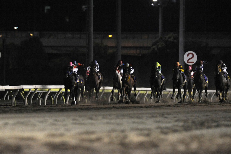 ゲートが開くと、好スタートを切った南関東勢、ゴーディー、セイントメモリー、コアレスピューマが先行争いを演じたのだが、二の脚の速さでシゲルカガが先頭に立った。大外枠のダノンレジェンドはあまり良いスタートではなかったが、鞍上のミルコ・デムーロ騎手はすかさず2、3番手まで押し上げた。逃げも予想された2番人気のコーリンベリーは、トモを滑らせたとのことで、いつもより後ろの位置取り。3コーナーあたりで外から3番手まで進出した。一方、実績馬ドリームバレンチノは後方からレースを進めていた。