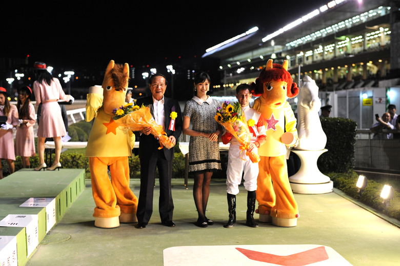 直線に入ると早くも先頭に立ったダノンレジェンド。「隣で馬が走っていることが好きな馬なので、逃げ馬が止まった時は少し不安でしたが…」とデムーロ騎手は心配したそうだが、そのまま楽々と後続を突き放し2馬身差の快勝となった。勝ちタイムは1分10秒9(稍重)。