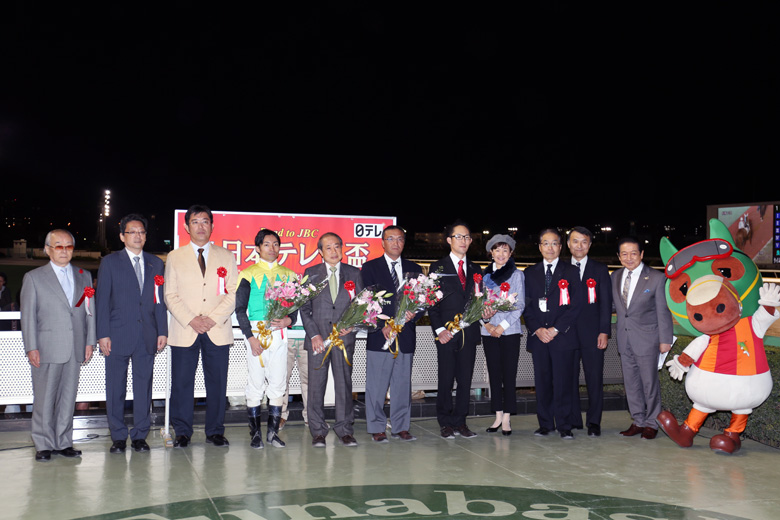 例年、9月の秋分の日前後に行われていた日本テレビ盃JpnⅡだが、今年は10月7日に実施。秋の深まりを感じるナイター開催の船橋競馬場は、メインレースの頃になるとひんやりとした空気に包まれていた。Road to JBC第3弾である今年の日本テレビ盃JpnⅡは、JRAの実績馬2頭に人気が集中した。1番人気はGⅠ/JpnⅠ・4勝のコパノリッキーで単勝1.6倍。2番人気はこのレース連覇を狙うクリソライトで2.0倍となり、この2頭の馬連複はなんと1.3倍。昨年のJBCクラシックJpnⅠ・1、2着馬が前哨戦で相まみえ、一騎打ちムードが漂っていた。