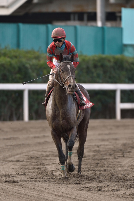 つまり、それだけレーザーバレットの末脚がすばらしかったということ。前日の強い雨がもたらした不良馬場は、地元騎手いわく「いつもより先行有利」。その状況をくつがえしての勝利は、7歳にして本格化という印象を残した。