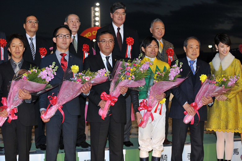 そして、このサウンドトゥルーの勢いに屈することとなった実績馬、ホッコータルマエとコパノリッキーだが、この2頭の対決は終始見応えのあるものだった。「勝った馬はどんどん強くなっているけど、コパノリッキーの強さを一番知っているだけに、楽な競馬をさせるわけにはいかなかった」とホッコータルマエの幸英明騎手。一方、4着に終わったコパノリッキーの武豊騎手は「前走から手前を全然変えないんですよね。状態なのかどうなのか。ただ今日はマークがきつかった。これが逃げ馬のつらいところ」と、自分の競馬はやりきったという雰囲気で語った。互いに良きライバルと認め合うこの2頭に、脚質の違う新鋭が加わり、来年はどんな展開が待ち受けているのだろうか。