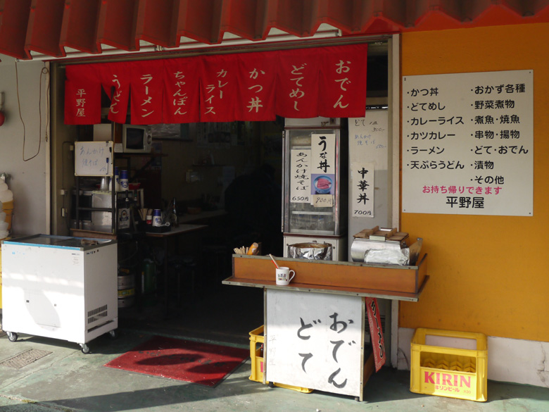 名古屋競馬場の正面入口の左右には食堂街があるのだが、そのなかで個人的に唯一、利用したことがなかったのが「平野屋」さん。とくに深い理由はないのだが、それでも食堂街のなかでもっとも小さなその店のことは、以前から気にかかっていた。というのは、この店だけがカウンターのみで営業しているから。面積が他の店の半分なのだから、テーブルを置くスペースがそもそもないのだ。