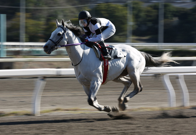 南関東にいた頃から芦毛でも白く見えるルックスは目を引きましたが、久しぶりにお写真を拝見して、さらにその白さが増したようにも思いました。普段は非常に大人しいそうですが、レースに行くと気合いをグッと出してメリハリのつけられるタイプだそうで、「誰からも慕われる馬だと思います」(別府調教師)。