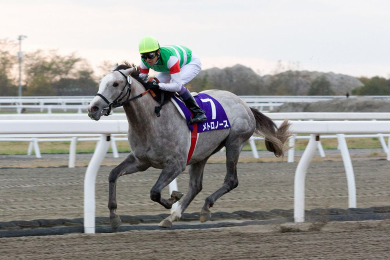 中央時代に出走した2008年北海道2歳優駿では、武豊騎手が騎乗し2番手から早め先頭で押し切る内容で優勝したメトロノース。2013年夏から佐賀へ移籍し吉野ケ里記念など2つのタイトルホルダーとなり、その後は南関東の一員となって、2015年秋から高知競馬の別府真司厩舎に仲間入りをしました。3月15日の高知開催では、中央競馬の新人・藤田菜七子騎手が手綱を取り、果敢に逃げながらも3着(1番人気)。藤田騎手が初勝利を挙げるのではと注目を集めていたレースで、結果は残念でしたが、メトロノースが今でも現役で頑張っていることを全国の競馬ファンに改めて知らせるきっかけにもなりました。