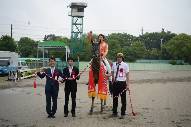 乗り込みは3週間ほどしてきましたし転入初戦としてはまずまずの仕上がり。とにかくダービーを勝ててうれしいです。状態は同じ厩舎のミトノレオの方が数段いいと感じましたが、こちらの底力が上回っていたということでしょう。今後は金沢のMRO金賞に向けて調整することになると思います。