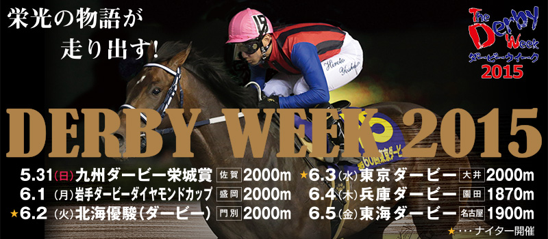全国各地の6競馬場(佐賀・盛岡・門別・大井・園田・名古屋)で行われる“ダービー”6競走を短期集中施行する夢のような6日間、それが「ダービーウイーク(Derby Week)」(創設2006年)です。