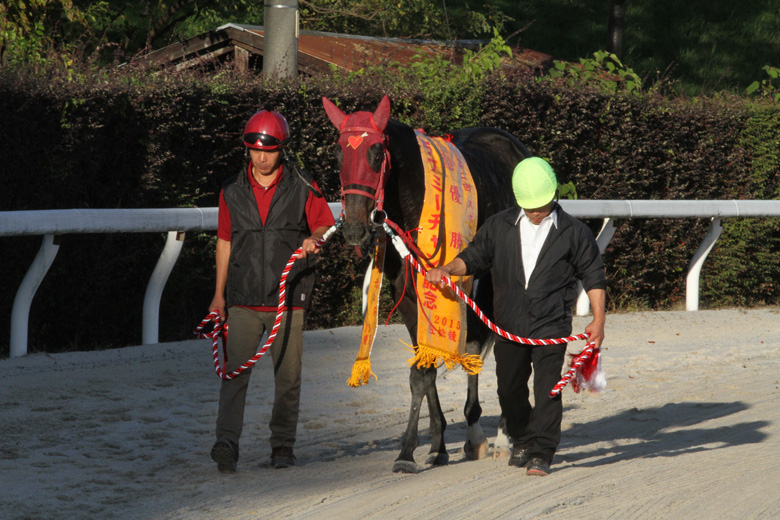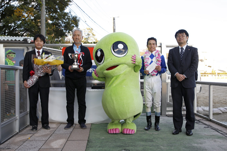 吉井友彦騎手は、「早めに笠松に入って乗っていたので、感触はわかっていました。去年も道営の馬に乗せてもらって(レッドムーン・6着)結果が出せていなかったのですが、今年は勝ててよかったです」と、ほっとした様子だった。