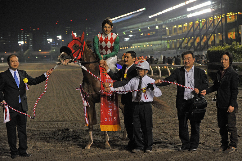 (直線で抜け出してからは)手ごたえは抜群でしたが、あとは自分が遊ばれないようにだけ心がけました。なんとかもってくれと、一生懸命追いました。道営では短距離の重賞(栄冠賞)を勝っていますが、長い距離も合うと思いますし、競馬もうまいので、もっともっと活躍できると思います。