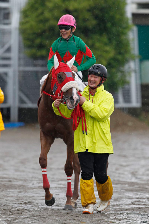 直線で田中騎手が懸命に追っているように見えたのは、馬がハミを抜いて遊んでしまったため。吉行龍穂調教師によると、地元だとわかって直線ではハミを抜いてしまうのだそうだ。普段から調教でも気を抜いてしまうことが多く、それでも最近ではようやくまじめに走るようになってきたという。それだけにまだまだ強くなる余地を残しており、陣営の今後への期待も大きいようだ。