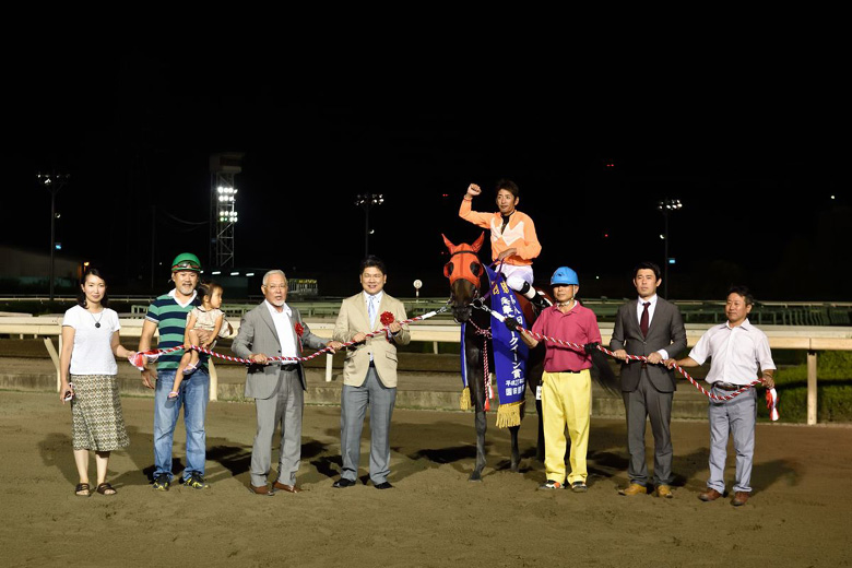 勝ったエーシンサルサは、このレース連覇。昨年はこのあと牡馬相手の摂津盃まで制し、A1特別から6連勝という快進撃を見せた。しかしその後は長期の休養。「摂津盃のあと、脚元に気になるところがあったので休ませました。戻ってきてからも状態が戻るのに時間がかかりましたが、勝てて最高にうれしいです。今日の馬場は逃げたらしんどかったと思います。ケンブリッジナイスが行ってくれて、展開的にもよかった。木村君もうまく乗ってくれました」と橋本忠男調教師。