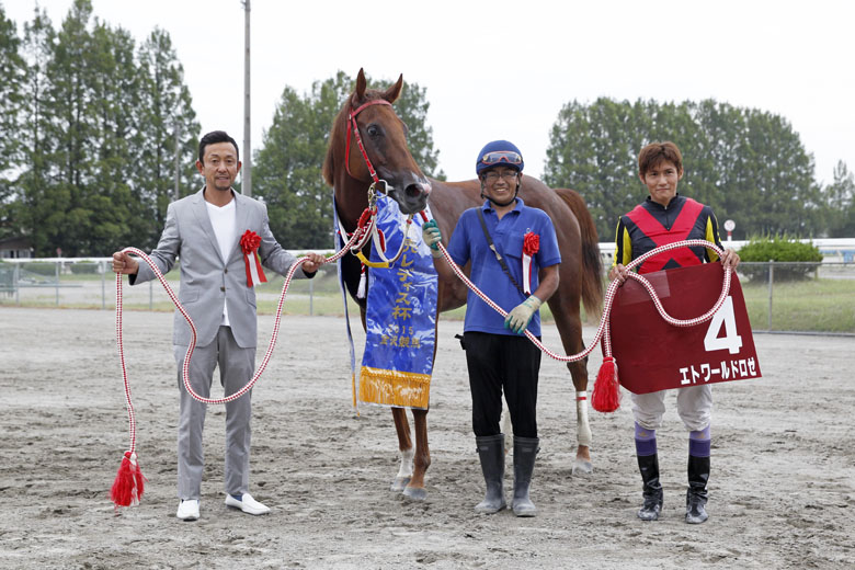殊勲の田知弘久騎手は今年で12年目。このエトワールドロゼでの昨年の加賀友禅賞が重賞初勝利で、今回が2勝目。今年は過去になかった勢いで勝ち星を伸ばし、これが51勝目。目下金沢リーディングでトップに立っている。今回の勝利はそうした勢いもあったかもしれない。